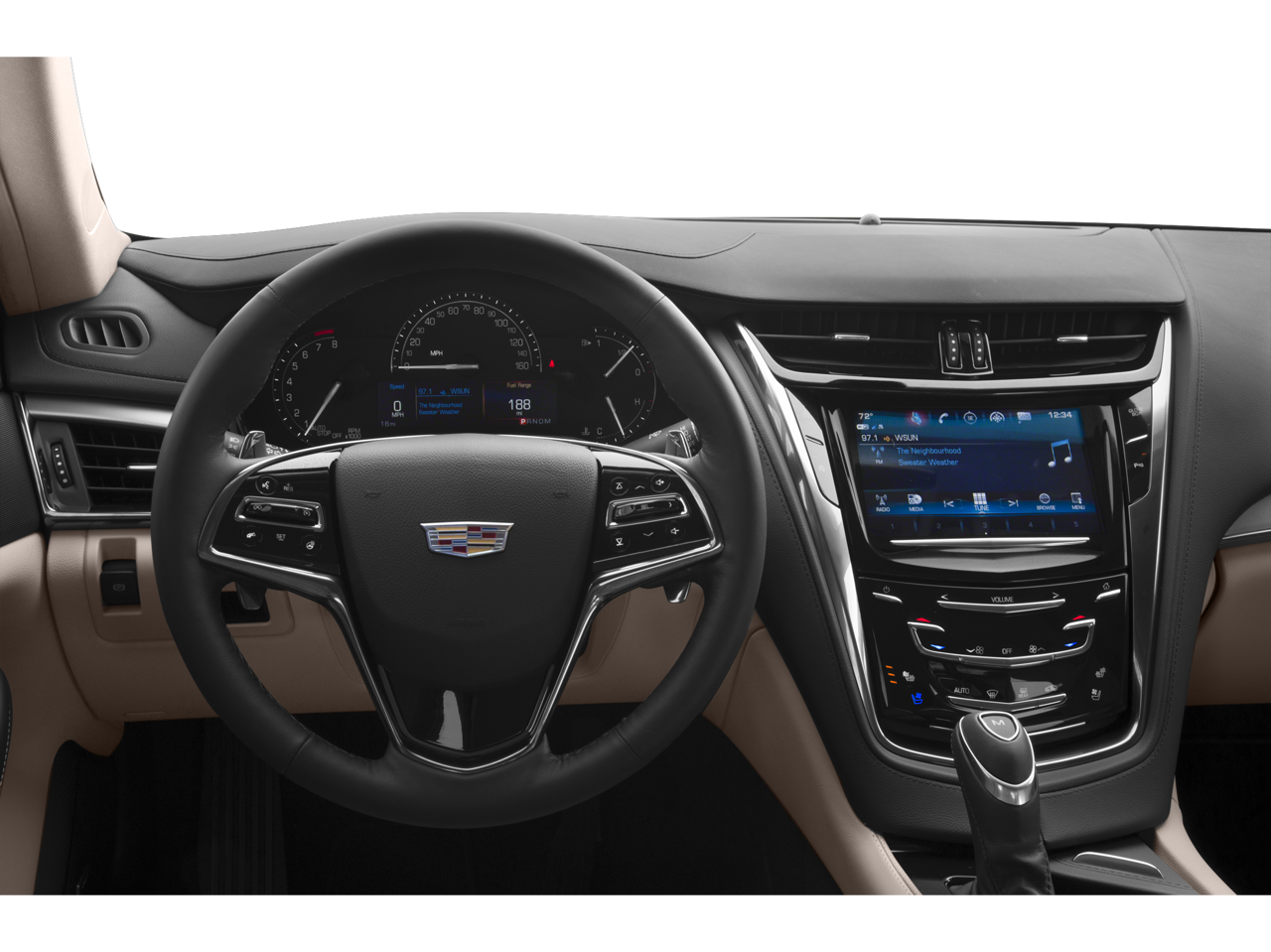 - Cadillac user experience with embedded navigation AM/FM stereo with connected navigation providing real-time traffic, 8" diagonal color information display, two USB ports, personalized profiles for each driver's settings, Natural Voice Recognition, Phone Integration for Apple CarPlay and Android Auto capability for compatible phone, Connected Apps and Teen Driver