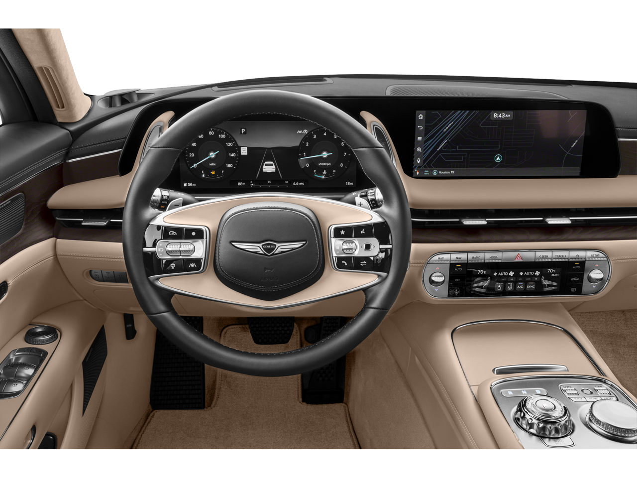- Radio: AM/FM Bang & Olufsen 3D Prem Audio System -inc: navigation system w/12.3" HD screen, SiriusXM and HD radio, Android Auto, Apple CarPlay, 23 speakers, 100W x 14 channel (1400W, max, equivalent output), Genesis Connected Services, 300W auxiliary amplifier for 3D sound, Bluetooth® hands-free phone and audio streaming system and 5 USB-C ports (2 front, 1 center console, 2 rear)